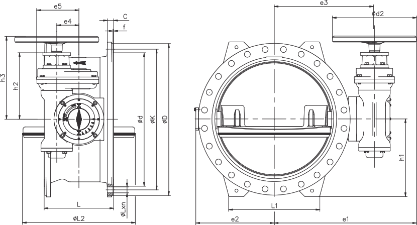 Butterfly Valves are valves that allow flow by 90° rotation of the disc. ÖZKAN butterfly valves are double eccentric and the rubber sealing ring is fixed to the disc with a one piece retaining ring. This design provides 100% sealing and enables the sealing ring replacement to be easily performed on site, without dismantling any other part and without requiring any special equipment.
